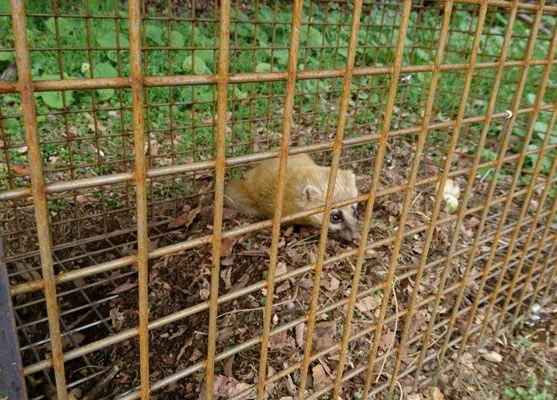 捕獲業務は、いろんな動物が錯誤捕獲されますが、この子は、一晩の間に落ち葉のベッドを作ってました。見回り時には丸まって熟睡。よっぽど寝心地よかったんでしょうね~。